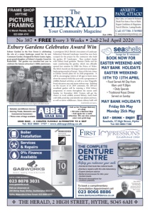 TROPHIES & ENGRAVING STRADA VAN SERVICES (formerly “Hythe Man & Van”) Local Removals & Furniture Moves Waste License Holders • Fully Insured Family Business • Competitive Rates Phone/Quotes: 07811 641877 www.StradaVanServices.com MAN & VAN CATS ‘R’ US - CAT & KITTEN RESCUE have lovely cats of all ages awaiting suitable homes. Neutered & healthy. We will readily accept unwanted kittens into our care. Tel: 023 8025 3563. COULD YOU give a stray or unwanted pet a loving home? Call Lymington Cat & Kitten Rescue on 01590 678233 or visit our website at www.lymicat.org . Please support our SOS Appeal to secure our charity’s future - your donations are vital. EAST BOLDRE Hedgehog Rescue urgently needs donations of meaty cat food including cat biscuits &/or Spikes Hedgehog food. Thank you 07595 709617. HELP WANTED with the care of rescued ponies at Sway Tel: 01590 682766 (evenings). RABBIT RESCUE. Rabbits and guinea pigs needing loving homes for life. Tel: 023 8084 8835. SPEAKERS v EMAIL THE HERALD ON editor@herald-publishing.co.uk v WANTED 2nd April 2020 • The HERALD • Page 759 VOLUNTEERING OPPORTUNITY Lester Mortimer wishes to purchase, for cash, any of the following old items: • Silver and Silver Plate • Cutlery • Copper • Brass • Masonic Regalia • Swords • Bayonets • Uniforms • Medals • Badges • Helmets • Airguns • Stamp Collections • Postcards • Cigarette Cards • Coins • Bank Notes • Leather Bound Books • Documents • Ephemera • Leather Luggage • Watches • Cameras • Costume Jewellery • Toys • Tools and anything else old or unusual TOP PRICES PAID Please Phone me anytime on 01590 623742 u HERALD CLASSIFIEDS u PETS & ACCESSORIES TUITION THE FRIENDS of Testvale Surgery in Totton have vacancies for members to help run this small charity with funds to support all patients of our practice. We also need volunteers who can spare 2-3 hours per week to help patients to use the automated blood pressure and bodymass index monitors and access medical and social resources available in our walk in support centre. Appropriate training and support will be provided. Call Ken 023 8086 7650 or Friends of Testvale 023 8086 2130, leave a message on the answering machine and we will return your call as soon as possible. WATERSIDE SCRAPSTORE supplies donated materials to its members for art and craftwork. Trustees plan to expand the business and are seeking more volunteers to assist with a choice of tasks including fundraising, publicity, trusteeship and helping in their shop in Totton. If you think you might be interested, would like to know more, or you represent a group and would like to become a member, or have materials to donate contact 023 8081 4314. CASH PAID for 1960’s guitars, amps, speakers and effects, Vox, Marshall, Selmer, Rangemaster, Gibson, Fender etc, will collect working or not, anything considered. Tel: Paul 07752 583198. FRIENDS OF the Cancer Research UK (Romsey & Wellow), welcome donated goods, (especially for raffle prizes, tombola etc), unwanted gifts, crafts, bric-a-brac. Tel: 01794 516392. OLD SPECTACLES (no cases please) and Hearing Aids collected for Lions Club. Bring them into Herald Publishing, 2 High Street, Hythe, Southampton, SO45 6AH. TOOLS AND sewing machines needed by local charity for development projects in Africa. Tools for Self Reliance in Netley Marsh SO40 7GY are urgently in need of sewing machines (hand, treadle or electric) and suitably skilled/ experienced volunteers to help test and refurbish them. Phone Edward on 023 8089 8706 for collection or contact the charity direct on 023 8086 9697, info@tfsr.org ; or visit: www.tfsr.org VINTAGE MENS watches wanted by collector, 1950’s-1990’s, Rolex, Omega, ex-military etc. Sports/diving/chronograph types preferred. Any condition, working or not. Please call 07779 622172. WANTED – Air pistols and air rifles, working/broken or parts. Anything considered. Call Paul on 023 8084 2798 or 07736 384051. WANTED – Honda C90 Cub motorcycle, would prefer 1998 or earlier model, ideally one owner, low mileage, in very good condition. Please email: recycledreading@gmail.com WANTED – HORNBY Dublo 3 rail model railway items, Dinky Dublo vehicles also wanted. Anything considered. Please phone Colin with details on 023 8087 9926. WANTED – Old Norton motorcycle by an old enthusiast to restore and ride. Also any 1950’s era TT items. Anything cheerfully considered. Please email: recycledreading@gmail. com WANTED – Old and obsolete Dinky, Corgi Matchbox and Spot-on models, any condition considered, also railway items, Engines, Goods Wagons and Coaches, please call 023 8087 9042 or 07786 722363 for a chat, any old toys considered (not boxed games). WANTED – Old radio and audio valves. Please phone Alan 07557 792091. WANTED – Records bought by collector, LP’s and 45’s/ singles, from 1950’s, 60’s, 70’s, 80’s and 90’s. Rock, prog, psyche, folk, pop, R&B, blues, funk soul, reggae, ska, jazz, film scores and classical. All types of music considered for cash. Will always pay a fair price for your vinyl. Any quantity - large or small. Call Robert 07518 148126 or 0208 780 9187. WOOL WANTED for Calmore Women’s Group who knit items for various charities. Telephone Jean Trinder on 023 8086 8455. on the New Forest pony – ‘More Than Meets the Eye’. You will be surprised at what you will discover? For more details contact suzannekempe@uwclub.net or 01590 675854. ENTHUSIASTIC SPEAKER available to give illustrated talks on Vintage Vehicles, Steam, Commercials, Fairground, etc. Could be available short notice, call Bob on 023 8081 3341 for list of titles and fees etc. FAMILIES MATTER is a local charity based in Hythe, which helps families in need. Charity speaker available for groups to give an illustrated talk about its work. Tel: Julia 023 8020 7623 for details. INTERESTED IN: ‘Sustainability in Business’ or ‘Sustainable/Responsible Tourism - What is 