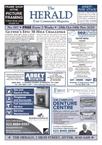 v THE NEXT HERALD IS OUT ON 19TH NOVEMBER v 29th October 2020 • The HERALD • Page 45 Contact Nick 07825 662955 or 023 8017 3186 (office) • Local Domestic and Commercial Tree Surgeons • Hedging work • Tree reductions • Thinning • Tree dismantles • Arboricultural reports and Surveys • Fencing Free no obligation quotation, and free advice E: enquiries@langleyarb.com W: www.langleyarb.com THE TREE WIZARD All aspects of tree surgery, garden maintenance and landscaping undertaken Family run business for over 20 years No Job Too Big or Small Please call 07552 977731 for a Free Quotation | DOWN THE GARDEN PATH | RUSTIC AUTUMN JOY by Debbie Thorne, Forrester’s Gardening Club As always, as a club we are hoping everyone is keeping well and, if not, we sincerely wish you a very speedy recovery. For a pick me up during these days mixed with grey skies, sunshine, warmth and chill, we have an easy idea to place in your home in an area that will bring you joy. As always, this can be as big or as small as you like. See if you have a crate, rustic box, galvanised storage container… or any vessel you fancy. If you are really stuck, a cardboard box with leaves stuck on the outside and a waterproof dish, old tray from your vegetable shopping can su ce. en nd a selection of jam, mayonnaise, pickle jars, or vases where the height is below the sides of the box, whatever you choose. Decide what you would like to go in your jars: dried foliage, seedheads; silk owers and arti cial foliage; fresh foliage, owers, berries, rose hips etc. If you are feeling really creative, you could spray with spray paint, glitter, why not! en either add water, or not, depending on what you are going to put in each jar, and make little groups of displays in each of the jars. Place them all in the box or large vessel. Make sure you have enough that the jars are snuggled in, but giving a pleasing display. You can ddle around with this as long as you like. If you like, you can mix fresh and dried. You could mix in scented owers like freesias, if you are going for full on Autumn, don’t forget the rustic orange freesias. On a dry day you could pick hydrangea heads and allow them to naturally dry for your display. For more information about Foresters Flower Club please contact Debbie orne: 07769830752 e club hopes to resume the evening of 4th February 2021 , depending on Government guidance. Hydrangea Heads e Healthy Haven Garden at the Waterside Medical Centre now has a full complement of volunteers. ey meet on a Monday, Tuesday, ursday and Saturday morning to work in the garden in groups of 6 people due to COVID-19. Over the summer months they have held garden visits and strawberry cream teas which were enjoyed by all. ey have been able to sell their owers and vegetables to the sta and out the front of the surgery to the patients. ey are now fundraising for a new summerhouse/log cabin. e volunteers have been busy planting Spring bulbs so they hope the garden will be fully open next year for all to see. ey have a Facebook page at www.facebook. com/groups/2698592857082670/ which you can like and follow all the latest developments Healthy Crop of Volunteers