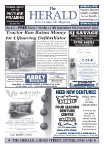 LOCAL HISTORY MAN & VAN STRADA VAN SERVICES (formerly “Hythe Man & Van”) Local Removals & Furniture Moves Waste License Holders • Fully Insured Family Business • Competitive Rates Phone/Quotes: 07811 641877 www.StradaVanServices.com MOBILITY EQUIPMENT INTERESTED IN our local history, then visit Waterside Heritage at their centre at the Old Railway Centre in Dominy Close, off Shore Road, in Hythe. Extensive collection of documents and photographs covering the Fawley, Hythe and Dibden Purlieu areas in particular. Open Thursday and Saturday mornings from 10.15am and on Tuesdays by appointment. Contact Graham Parkes on: 023 8084 4074 or Gordon Chambers on: 023 8084 4749. ADULT FOLDING wheelchair, £20. Tel: 023 8086 8960. MOBILITY SCOOTER, folds/dismantles to take in car, new batteries, recently serviced, £300. Tel: 07517 200383. MOBILITY SCOOTER, Liberty Vogue, good condition, £300. Tel: 023 8084 4540. WHEELCHAIR RAMPS Handmade at your home for Safer Easier Access, safest anti-slip surface, Free Surveys. Many photographs at: www.lymingtonramps.co.uk Tel: 07511 801493. TOP BOX for car roof, large size, black with keys, size 1500mm long x 900mm wide, good condition, £50. Tel: 023 8081 1613. BASS PLAYER WANTED by amateur band please phone for details Kaj Warming: 023 8084 5361 or: 07900 225763. CALLING ALL brass players, Lockerley Silver Band have vacancies for all brass sections. They meet between 8pm and 10pm on Fridays. No subs, no contesting. Instruments can be loaned. Check our website: www.lockerleysilverband.co.uk MARCHWOOD PRELUDE ORCHESTRA (Part of Marchwood Music Society) plays a varied menu of light classical, show time, film and other popular music. Rehearsals are on Thursday evenings during term time, in Marchwood Village Hall from 6.30pm until 7.45pm. For more information visit: www. marchwoodprelude.com or email: info@marchwoodprelude. com or telephone: 0845 463 7345 THE LYMINGTON Town Band is looking for new players – Brass, Woodwind and Percussion. The Band has a number of vacancies in all sections. The Band rehearses on Monday evenings between 7.30pm and 9.30pm at the Royal British Legion Club, High Street, Lymington. For further information contact Frank Weller on: 023 8084 6702 or email: frank.weller1@outlook.com MUSIC GROUPS PETS & ACCESSORIES 17th November 2022 • The HERALD • Page 79 MAN & VAN v EMAIL THE HERALD ON editor@herald-publishing.co.uk v WANTED u HERALD CLASSIFIEDS u Paper from responsible sources FSC® C020438 MIX ® The Herald is printed on FSC certified material RECYCLING Stamp Collections, First Day Covers, Old Postcards, Coins, Medals, Swords Masonic Regallia, Militaria, Cut Glass, Silver Plate, Copper, Brass, Costume Jewellery, Cigarette Cards etc TOP PRICES PAID Please ring Lester Mortimer on 01590 623742 michaelggarber.com or call: 07375 428454. ‘THERE ONCE was an ugly duckling’ - The misunderstood art and science of Homeopathic medicine. A talk which can be tailored to your needs. Call/text: 07553 175138 or email: allan@allanpollock.co.uk WASTE & RUBBISH RECYCLING HOUSE, GARAGE & GARDEN CLEARANCE Fast Friendly Service • Cheaper than a skip Domestic & Commercial and building waste Fully Insured and Licensed with Environment Agency We Remove Anything NEW FOREST RECYCLING 07808 125453 SPEAKERS A SELECTION of titles including ‘Spitfire!’, ‘Lawrence: Before & After Arabia’ and ‘Flying Boats of Southampton’ in addition to the ever-popular ‘The Red Arrows’, Schneider Trophy and the amusing ‘Census: did I count?’ and ‘Sign of the Times’ series. Please phone or email for detailed list. Colin van Geffen: 023 8089 7793 or: cvg@hotmail.co.uk BRITISH RED CROSS, various talks available on our work and services in the UK and Overseas for donation. Contact the Community Fundraising Department: 023 9289 4205/023 9289 4206, PFalck@redcross.org.uk or: PaulineGibson@redcross. org.uk CHARITY SPEAKER – available to talk about local charity ‘The Honeypot Children’s Charity’. Tel: Viv 023 8089 0002. CHARITY SPEAKER – Do you want to know more about Cancer Research UK, our work in your town, progress and how Gifts in Wills are helping to make breakthroughs. Contact: Stuart.Amey@cancer.org.uk or: 01425 278367 CHARITY SPEAKER – to give talks on ‘Hearing Dogs for Deaf People’, will also bring my dog. Call Stephen: 023 8046 5019 or email: yogiboo3162@yahoo.co.uk AVAILABLE ON ZOOM - new talk to compliment my very popular New Forest Pony talks. The New Forest - a landscape shaped by grazing and the ancient tradition of commoning. I am a breeder and a practising commoner who loves to take photographs of this beautiful area and share with my own experience of commoning through the year. Suzanne Kempe: 01590 675854 or email: suzannekempe@uwclub.net ENTHUSIASTIC SPEAKER available to give illustrated talks on Vintage Vehicles, Steam, Commercials, Fairground, etc. Could be available short notice, call Bob on: 023 8081 3341 for list of titles and fees etc. FAMILIES MATTER is a local charity based in Hythe, which helps families in need. Charity speaker available for groups to give an illustrated talk about its work. Tel: Julia 023 8020 7623 for details. HEALTHY HAVEN garden development and up to date plants and events. Talks to community groups, associations or gardening groups. Contact Chris Bennett: healthyhavengarden@ gmail.com LOCAL HISTORY TALKS from lifelong resident and experienced speaker. Available at relatively short notice. Titles are ‘From the Heath Hotel to Dibden Church, an historical journey’; History of Dibden Purlieu 1900 to 1960’; Then & Now images of Dibden and Dibden Purlieu’; Growing up in Dibden Purlieu in the 1950’s; in conjunction with Alan Lines ‘From a photograph to a War Memorial’; and ‘Robert Gerard Fox; the Kaiser’s Tutor’, ‘Langdown Lawn (Golden Hind Park)’ and ‘Fred Nicklen – The Road to Lismany’. Telephone Gordon Chambers: 023 8084 4749. MAGIC BEHIND the Scenes, talk an