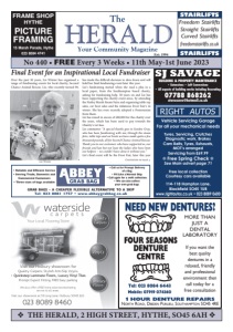 NEXT HERALD OUT ON THURSDAY 1ST JUNE MAN & VAN STRADA VAN SERVICES (formerly “Hythe Man & Van”) Local Removals & Furniture Moves Waste License Holders • Fully Insured Family Business • Competitive Rates Phone/Quotes: 07811 641877 www.StradaVanServices.com CALLING ALL brass players, Lockerley Silver Band have vacancies for all brass sections. They meet between 8pm and 10pm on Fridays. No subs, no contesting. Instruments can be loaned. Check our website: www.lockerleysilverband.co.uk MARCHWOOD PRELUDE ORCHESTRA (Part of Marchwood Music Society) plays a variety of popular, film and show music. Rehearsals are on Thursday evenings during term time, inMarchwood Village Hall, from 6.40pm to 7.55pm. NEW PLAYERS WELCOME. For more information please visit www.marchwoodmusicsociety. com or email info@marchwoodmusicsociety.com NURSLING & ROWNHAMS COMMUNITY BAND meets every Wednesday from 7-9pm and welcomes players of all abilities from all areas. We play a variety of music to suit all tastes. If you are interested, please contact Peter Ransom by email for further details: ransompeter687@gmail.com THE LYMINGTON Town Band is looking for new players – Brass, Woodwind and Percussion. The Band has a number of vacancies in all sections. The Band rehearses on Monday evenings between 7.30pm and 9.30pm at the Royal British Legion Club, High Street, Lymington. For further information contact Frank Weller on: 023 8084 6702 or email: frank.weller1@outlook.com MUSIC GROUPS PETS & ACCESSORIES 11th May 2023 • The HERALD • Page 75 MAN & VAN v EMAIL THE HERALD ON editor@herald-publishing.co.uk v u HERALD CLASSIFIEDS u Paper from responsible sources FSC® C020438 MIX ® The Herald is printed on FSC certified material RECYCLING People’, will also bring my dog. Call Stephen: 023 8046 5019 or email: yogiboo3162@yahoo.co.uk AVAILABLE ON ZOOM - new talk to compliment my very popular New Forest Pony talks. The New Forest - a landscape shaped by grazing and the ancient tradition of commoning. I am a breeder and a practising commoner who loves to take photographs of this beautiful area and share with my own experience of commoning through the year. Suzanne Kempe: 01590 675854 or email: suzannekempe@uwclub.net ENTHUSIASTIC SPEAKER available to give illustrated talks on Vintage Vehicles, Steam, Commercials, Fairground, etc. Could be available short notice, call Bob on: 023 8081 3341 for list of titles and fees etc. FAMILIES MATTER is a local charity based in Hythe, which helps families in need. Charity speaker available for groups to give an illustrated talk about its work. Tel: Julia 023 8020 7623 for details. HEALTHY HAVEN garden development and up to date plants and events. Talks to community groups, associations or gardening groups. Contact Chris Bennett: healthyhavengarden@gmail.com LOCAL HISTORY TALKS from lifelong resident and experienced speaker. Available at relatively short notice. Titles are ‘From the Heath Hotel to Dibden Church, an historical journey’; History of Dibden Purlieu 1900 to 1960’; Then & Now images of Dibden and Dibden Purlieu’; Growing up in Dibden Purlieu in the 1950’s; in conjunction with Alan Lines ‘From a photograph to a War Memorial’; and ‘Robert Gerard Fox; the Kaiser’s Tutor’, ‘Langdown Lawn (Golden Hind Park)’ and ‘Fred Nicklen – The Road to Lismany’. Telephone Gordon Chambers: 023 8084 4749. MAGIC BEHIND the Scenes, talk and magic interwoven for a fascinating insight into the world of magicians. Roger Daniels, Member of the Magic Circle: 023 8084 3537 or: 07718 489327. MINSTEAD TRUST and Furzey Gardens: for your community group or association, available charity speaker to talk about the inspiring story of Minstead Trust, local learning disability charity or the history of Furzey Gardens with botanical interest. Find out how Minstead Trust came to exist and learn of the motivational people that shape it and are part of it today. How Minstead Trust is supporting vulnerable people in society. Horticulturalists will love the history of Furzey Gardens talk. Contact Lesley.brooks@ minsteadtrust.org.uk OPEN SIGHT, Hampshire’s principal sight awareness & support Charity, can visit your afternoon Social Club or Group to give its presentation ‘Keeping Your Eyes Right’ which covers advice on good eye health care and tips on sight loss prevention. A donation to Charity funds is appreciated. Call Terry Smith on: 023 8064 6377 to book. SPEAKER WILL travel anywhere in Hampshire. Three main talks: The Humorous Poet, 30 Years of Writing Pantomimes and Making People Laugh and Cry with Verse. Available at short notice call: 023 8073 5254. SPEAKER on movies, musicals, jazz and classic pop, 1900-1955, live or remote. For details: mggarber@ol.com, www.michaelggarber. com or call: 07375 428454. ‘THERE ONCE was an ugly duckling’ - The misunderstood art and science of Homeopathic medicine. A talk which can be tailored to your needs. Call/text: 07553 175138 or email: allan@allanpollock. co.uk WASTE & RUBBISH RECYCLING HOUSE, GARAGE & GARDEN CLEARANCE Fast Friendly Service • Cheaper than a skip Domestic & Commercial and building waste Fully Insured and Licensed with Environment Agency We Remove Anything NEW FOREST RECYCLING 07808 125453 SPEAKERS WANTED MUSICAL EQUIPMENT AMPLIFIER, Marshall Valvestate 2000 AVT100 plus foot controller, zoom spo2 pedal and Korg Ga-1 tuner, £110, Tel: 07856 616684 (BH25 7NY). SPORTS EQUIPMENT 25 JIGSAW PUZZLES, 500 pieces, 1 owner, complete only once, £2 each. ELC Castle of Doom, good condition, £30. Tel: 07856 616684 (BH25 7NY). TOYS & PUZZLES CATS ‘R’ US - CAT & KITTEN RESCUE have lovely cats of all ages awaiting suitable homes. Neutered & healthy. We will readily accept unwanted kittens into our care. Tel: 023 8025 3563. COULD YOU give a stray or unwanted pet a loving home? Call Lymington Cat & Kitten Rescue on 01590 678233 or visit our website at www.lymicat.org. Please support our SOS Appeal to secure our charity’s fut
