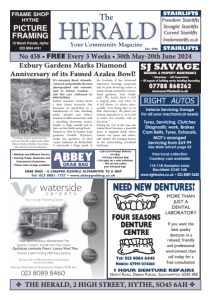 30th May 2024 • The HERALD • Page 31 v SUPPORT YOUR LOCAL BUSINESSES v ABOUT US Our roofers are the best in the business and are ready to give your roof a full and completely FREE inspection Waterside Carpet Cleaning PROFESSIONAL CARPET CLEANING! Using Prochem Equipment and Materials • SPOT/STAIN TREATMENT • Fully Insured 023 8066 0878 or 07770 337917 www.watersidecarpetcleaning.com HANDY HANDS HANDYMAN SERVICES Your Local Handyman For ALL Your Small Jobs • Gutter Clearance & Clearing • PVCu Fascias, Gutters, Soffits & Conservatory Cleaning • Pressure Cleaning of Paths & Patios • Window Cleaning • Interior & Exterior Painting • Grass Cutting, Strimming • Hedge Trimming • Shed Re-treated/ Roofs Re-felted • Flat Pack Assembly Fully Insured Free Estimates Work Guaranteed References on Request T: 023 8084 0096 M: 07840 860202 Stanswood House was eventually demolished when it had deteriorated beyond repair, in the late 1950’s early 1960’s. If anyone has any knowledge of a person who received treatment in this hospital, please can they send me that person’s name and any other information they might have pertaining to their stay in the hospital either Tales from the Graveyard of All Saints’ Church, Fawley as a patient or staff role. Thank you. My thanks to Annabella Drummond, Mandy Smith and the Waterside Heritage Centre for their contribution to this article. Continued from page 30 Over the last 250 years, many famous gures have lived at, or been associated with, Eaglehurst, including the Earl of Cavan, Guglielmo Marconi and Count Batthyany (whom we met in a previous story). Indeed, in the 1840s, Queen Victoria considered buying the property, but opted instead for Osborne House on the Isle of Wight. Eaglehurst’s most visible feature is Luttrell’s Tower, designed by omas Sandby and built around 1780 for Temple Simon Luttrell, then owner of the Eaglehurst estate. At that point – apparently – subterranean passages led from the tower down to the beach, and to an array of marquees in the Eaglehurst grounds. e house at Eaglehurst was built around 1808 for the Earl of Cavan – who found the accommodation in Luttrell’s Tower too con ned, and damp. Looking back to April 1779, in the Hampshire Chronicle we nd an interesting advertisement for the services of a racehorse, Petruchio, stabled at Eaglehurst and presumably owned by Luttrell: “TO COVER, THIS SEASON, at Eaglehurst, near Fawley, by the New Forest; for two guineas each mare, and half a crown the Groom. The noted fine brown horse, Petruchio, 15 hands and one half high, full of bone, late Jennison Shaftoe’s. Esq., deceased. He was got by Snap, his dam by Old Cade, and she out of a daughter of Old Slammerkin, and got by a full brother of Old Babraham; Slammerkin was the dam of Black-and-all-Black, and Fenwick’s Duchess. Petruchio, when four years old, won the great sweepstakes at York, beating Blue-Cap and Sulphur, and five more, with great ease; and in April following, he won the 140 guineas sweepstakes at Newmarket, heath subscription, beating Hermione and five other subscribers; and in the same meeting he won the 140 guineas subscription, against six more subscribers, and after that became a trial horse. The last time he started, he beat Gimcrack, Chalfont, and several more. N.B. Proper care will be taken of the mares”. In May the following year, the advert reappeared. Although by then the price for Petruchio’s services had dropped to one guinea per mare, the groom was still 2s. 6d. Petruchio’s original owner, Jenison Sha o, born in Northumberland, was an MP, race-horse owner and breeder, and notorious gambler. He shot himself in 1771, allegedly because of gambling debts. A er his death, his brother Robert continued to run his Cambridgeshire stables. How Petruchio wound up at Eaglehurst, we may never know. At the very end of 1780, a great collection of furniture and other e ects from Eaglehurst, along with Petruchio, were put up for sale; we’ll look at that in the next story. PETRUCHIO OF EAGLEHURST by Robin Somes, Fawley and Blackfield Memories beating Snipe and Javelin, and three more, though Snipe beat Chatsworth twice in that year, and in May following, Petruchio won the AscotEngraving of Luttrell’s Tower, 1807, from a drawing by I. Nixon